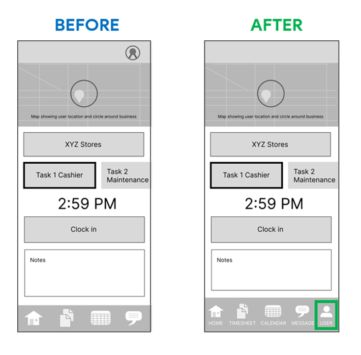 The second most prevalent insight from the study was that the user profile icon was graphically confusing, located far away from the navigation bar and was unlabeled. Moving the icon, adding a label and refining the graphic helped users in the second study