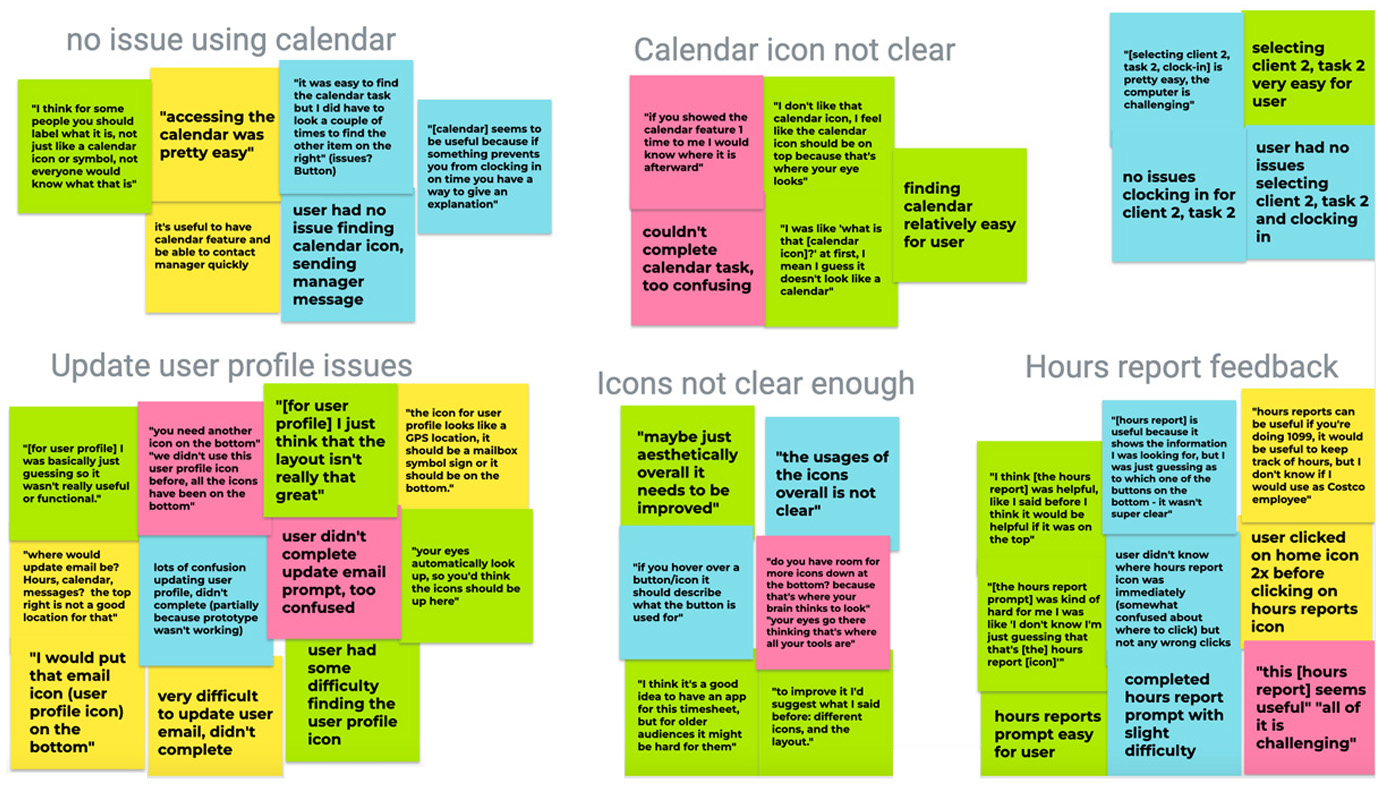 After completing a working prototype in figma I began the usability study with 5 participants. The feedback was very helpful and is shown in themes below with quotes from different users along with observations.